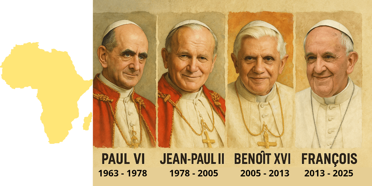 Il a fallu attendre le 262e pape de l’histoire pour avoir une visite pontificale officielle en Afrique. Ce fut en 1969. Et depuis ce temps, tous les papes ont foulé le sol du continent, à l’exception de Jean-Paul 1er (Albino Luciani) qui n’aura fait que 33 jours à la tête du Vatican.